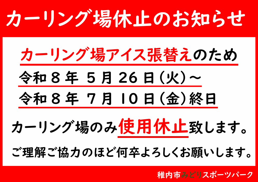 【5/26~7/10】カーリング場アイス張替えに伴う利用休止のお知らせ